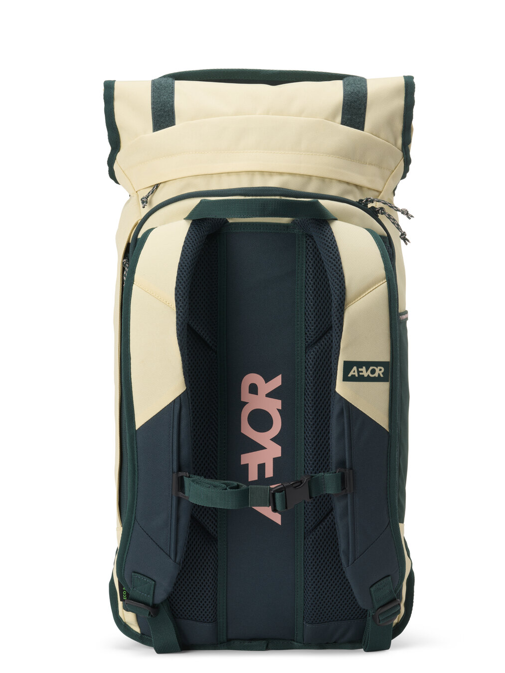 Stylový cestovní i městský batoh Aevor, který v sobě kombinuje styl i praktičnost na cestování. Batoh je díky rolovací horní straně možné nosit jako malý městský batoh, zároveň však dokáže zvětšit svůj prostor pro věci na delší výlet. Hlavní kapsa batohu je zajištěna pomocí dvou stahovacích přezek. Přístup do hlavní kapsy je pomocí zipu přes celou přední stranu panelu. Batoh je šetrný k životnímu prostředí, materiál použitý na výrobu batohu je z 50% tvořen recyklovanými PET lahvemi.