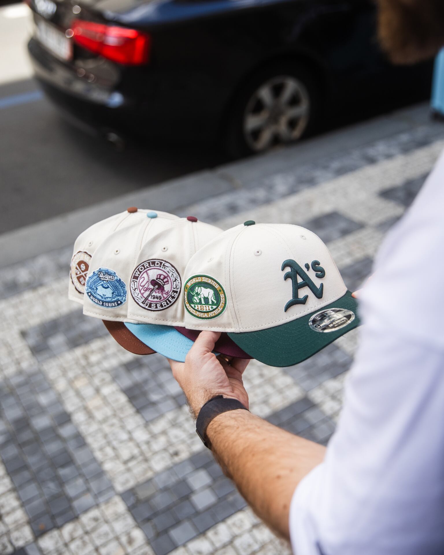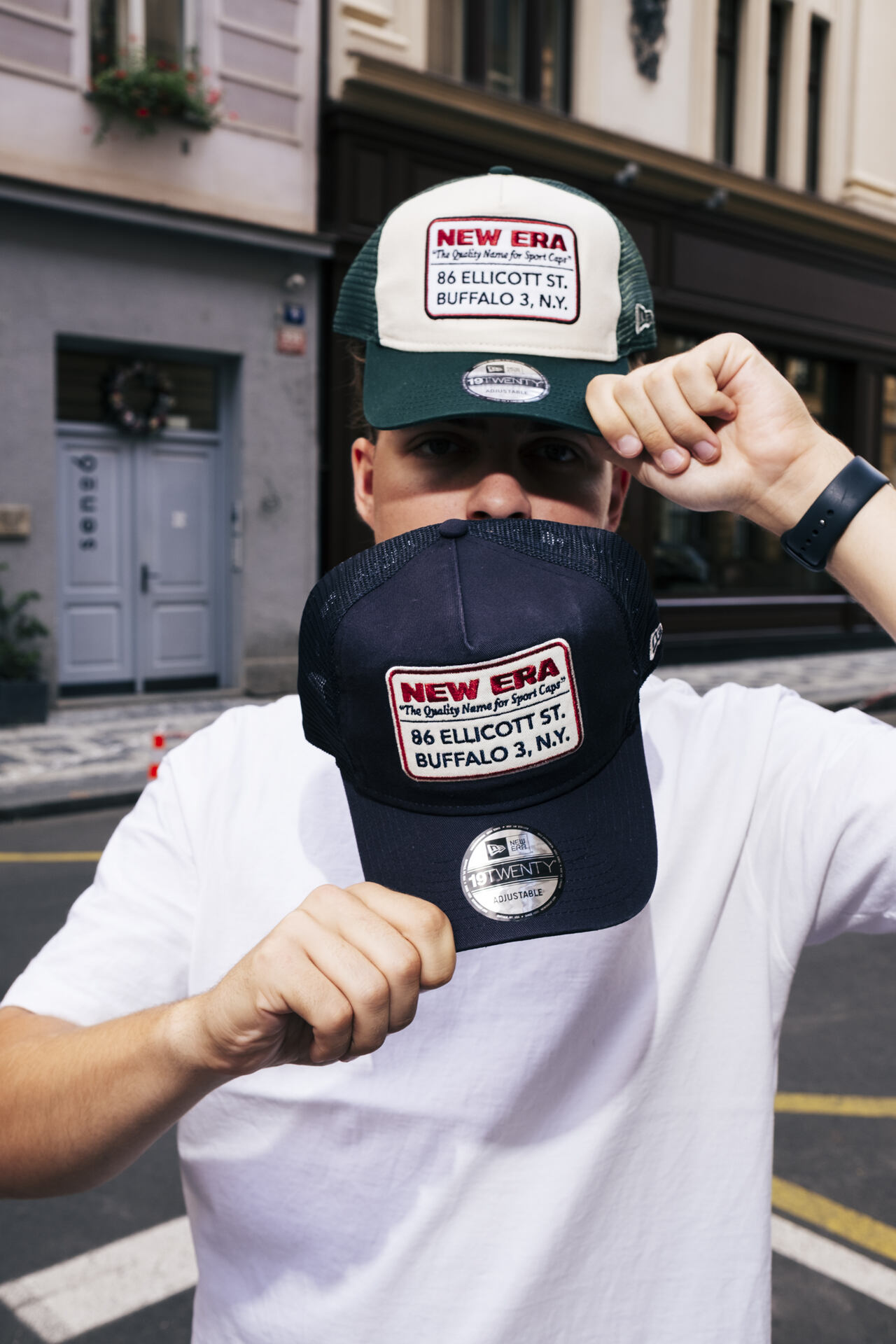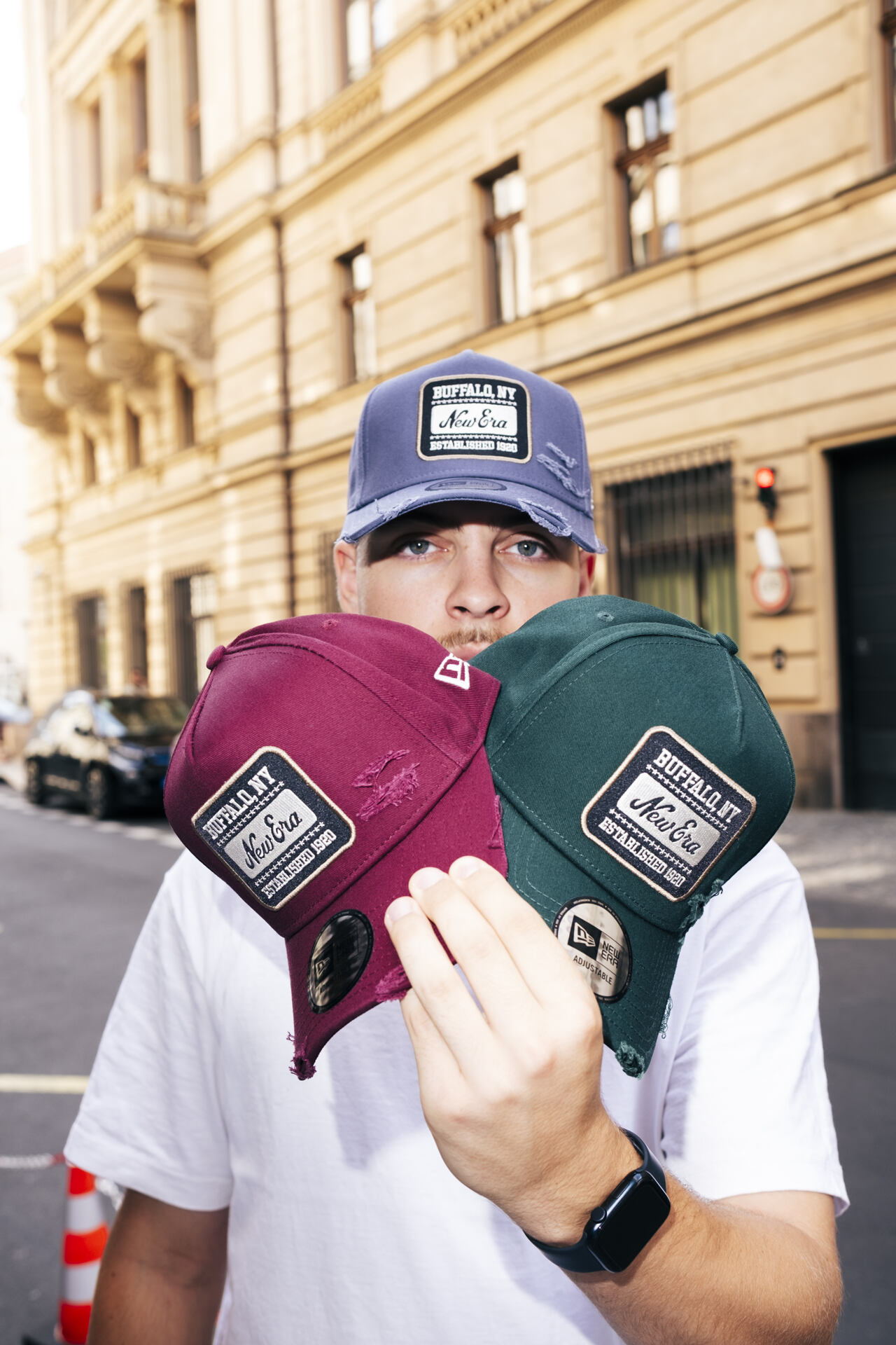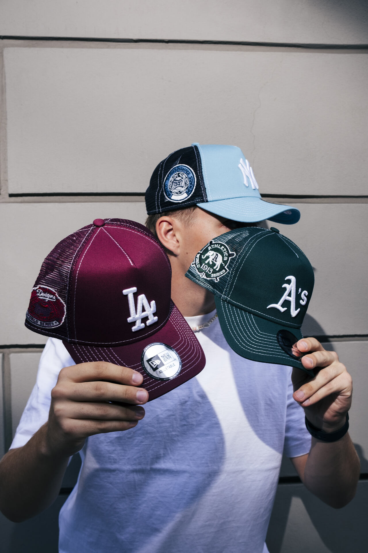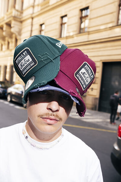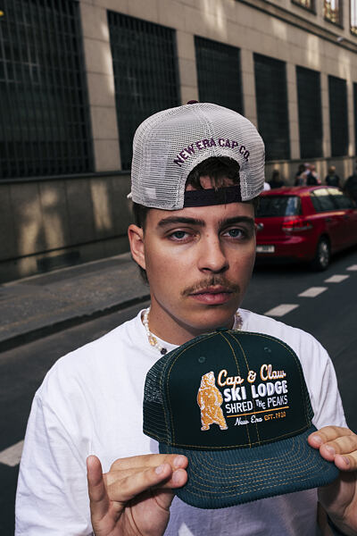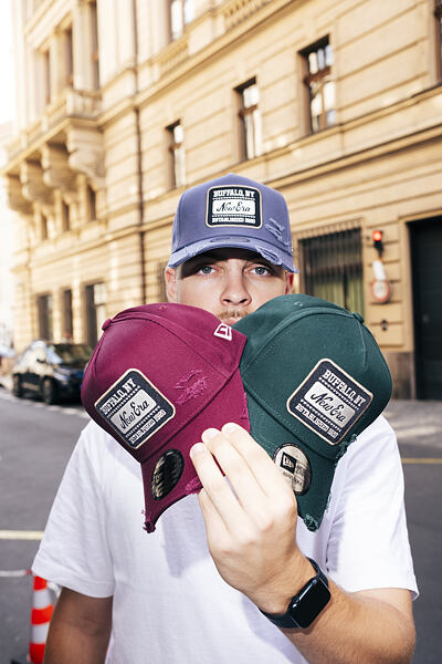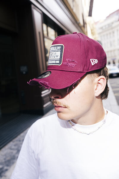 - Das textile Größenverstellband wurde durch einen plastik Snapback ersetzt