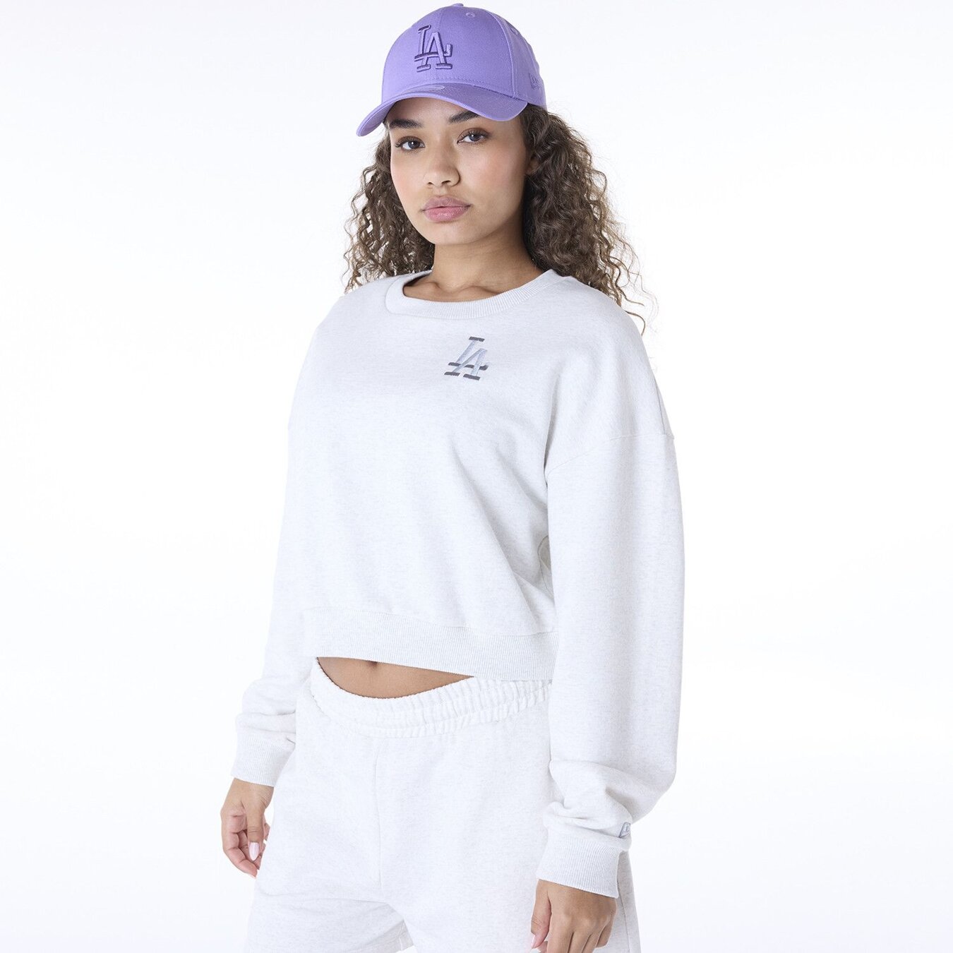New Era grau mikina für Frauen mit dem Motiv des Los Angeles Dodgers Baseballteams.