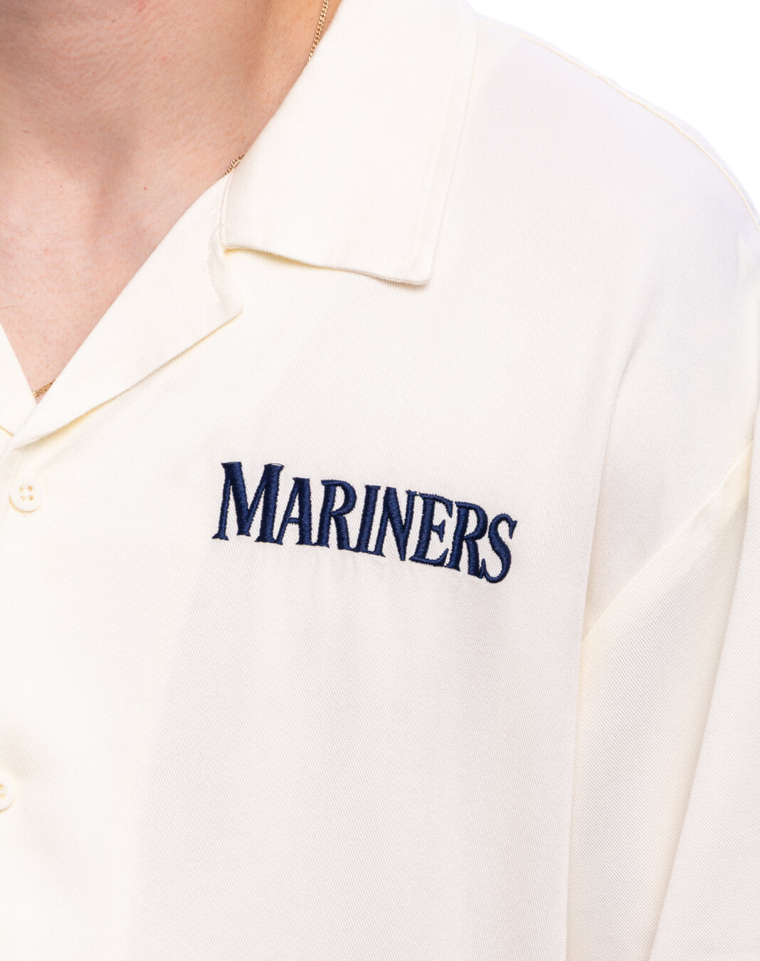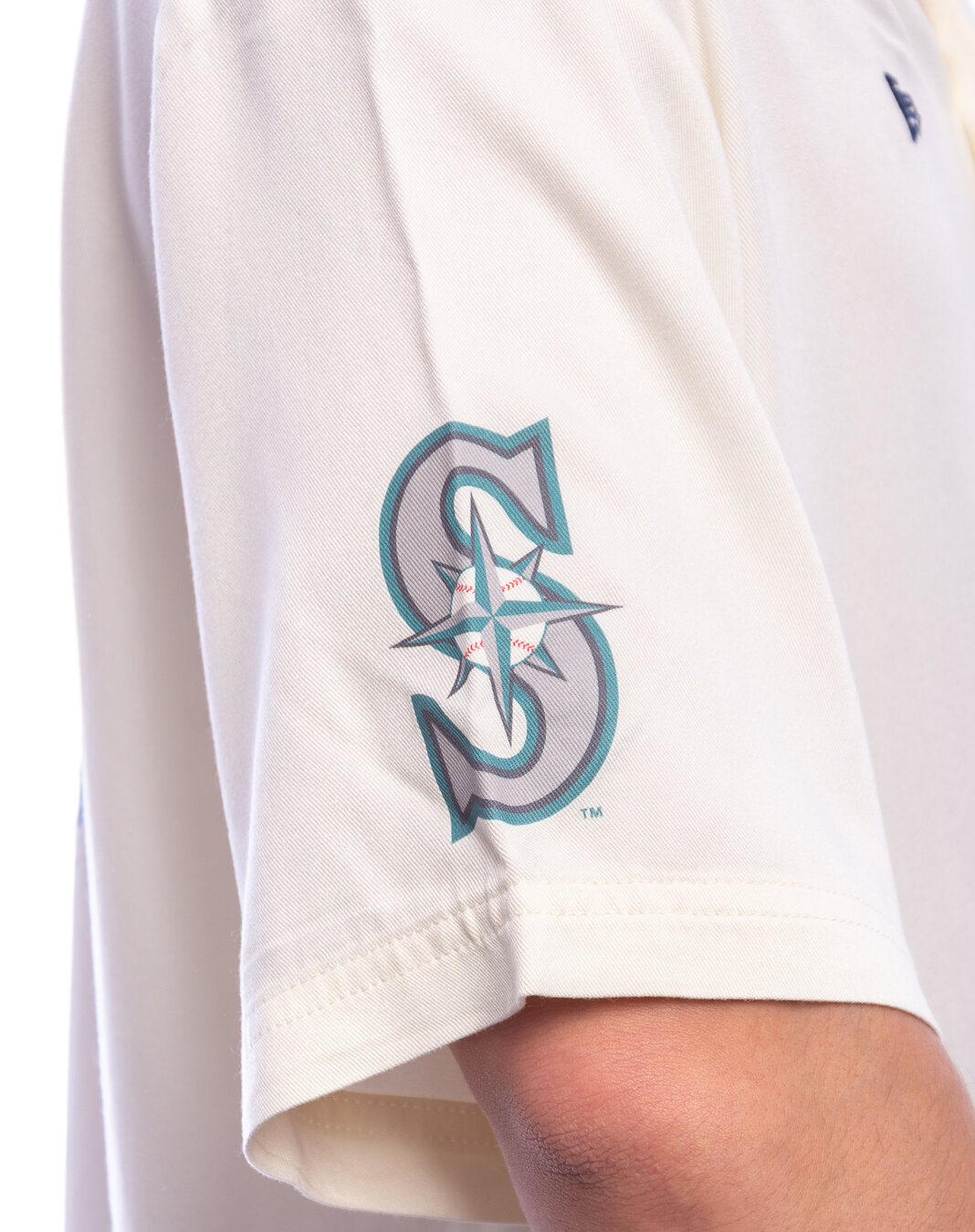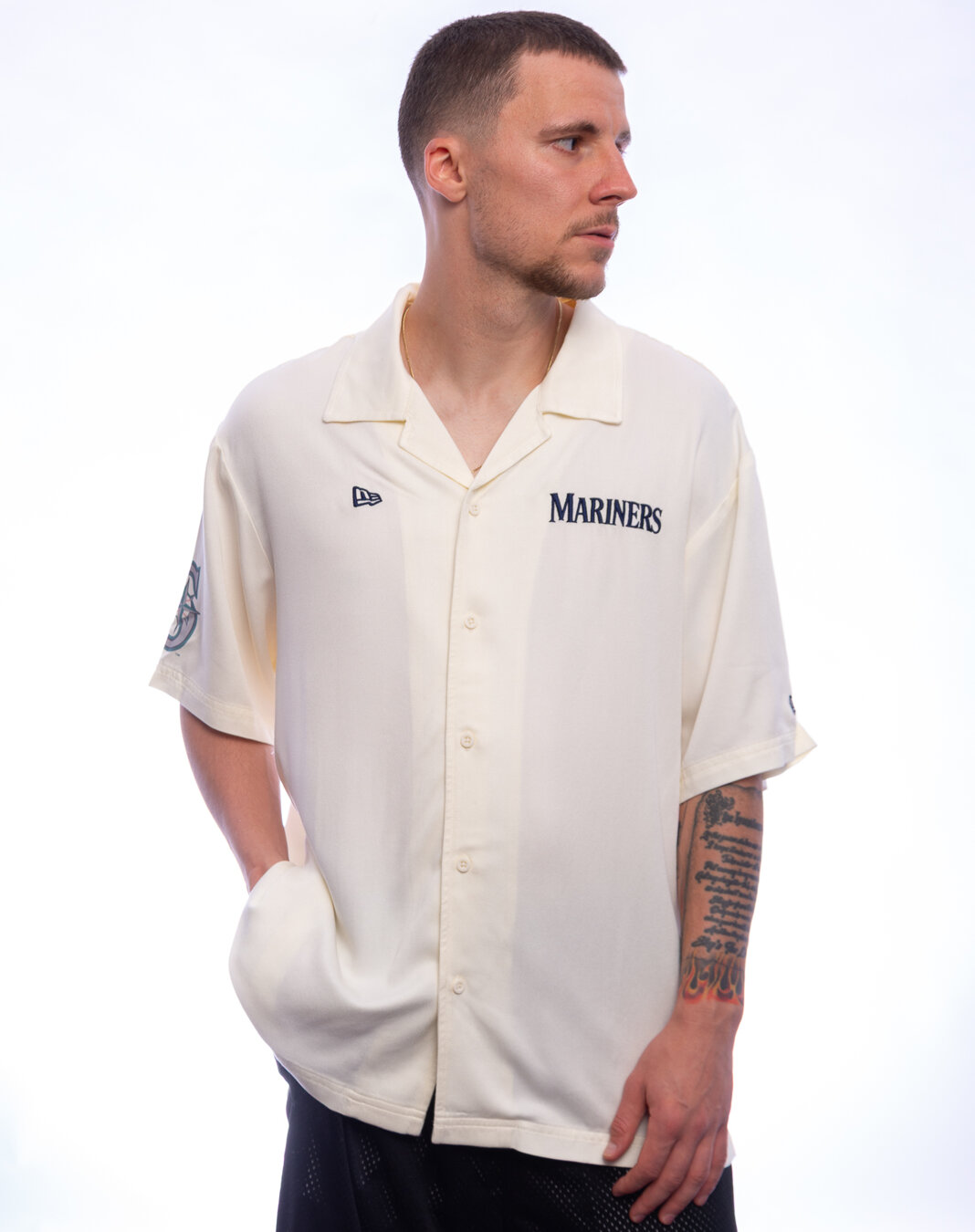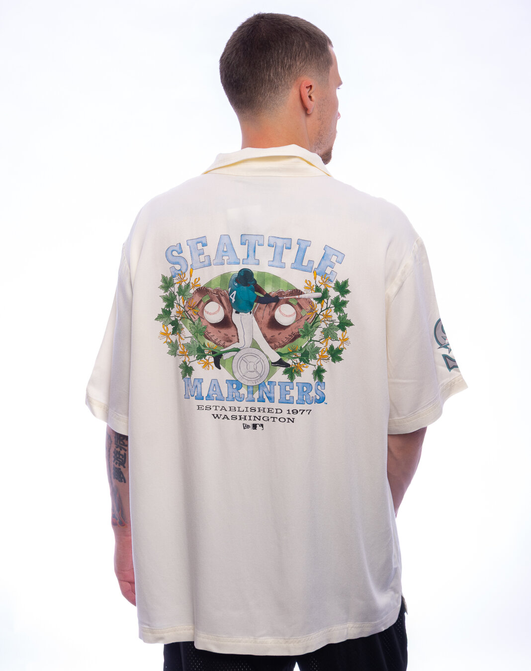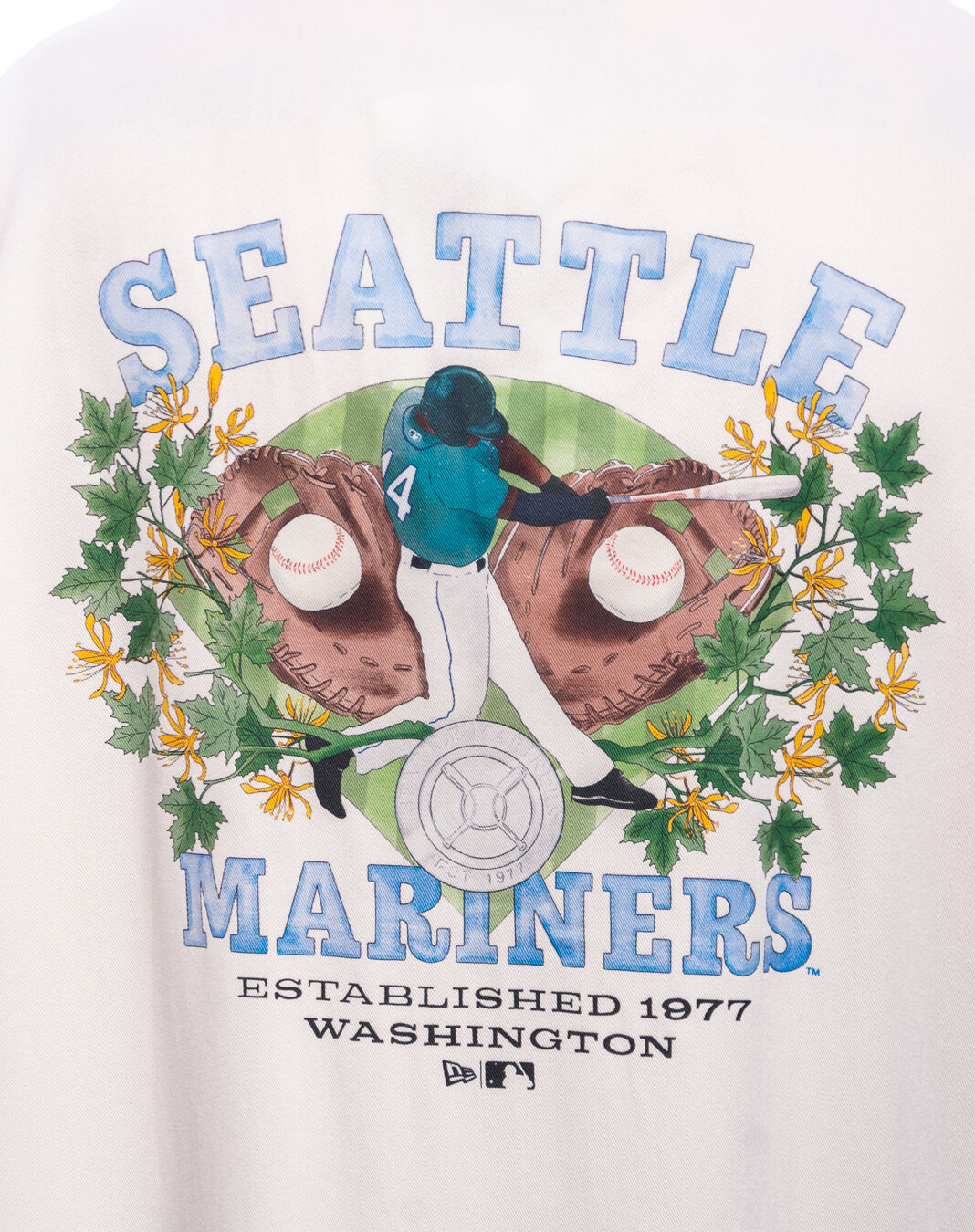 New Era weiß košile für Männer mit dem Motiv des Seattle Mariners Baseballteams.
