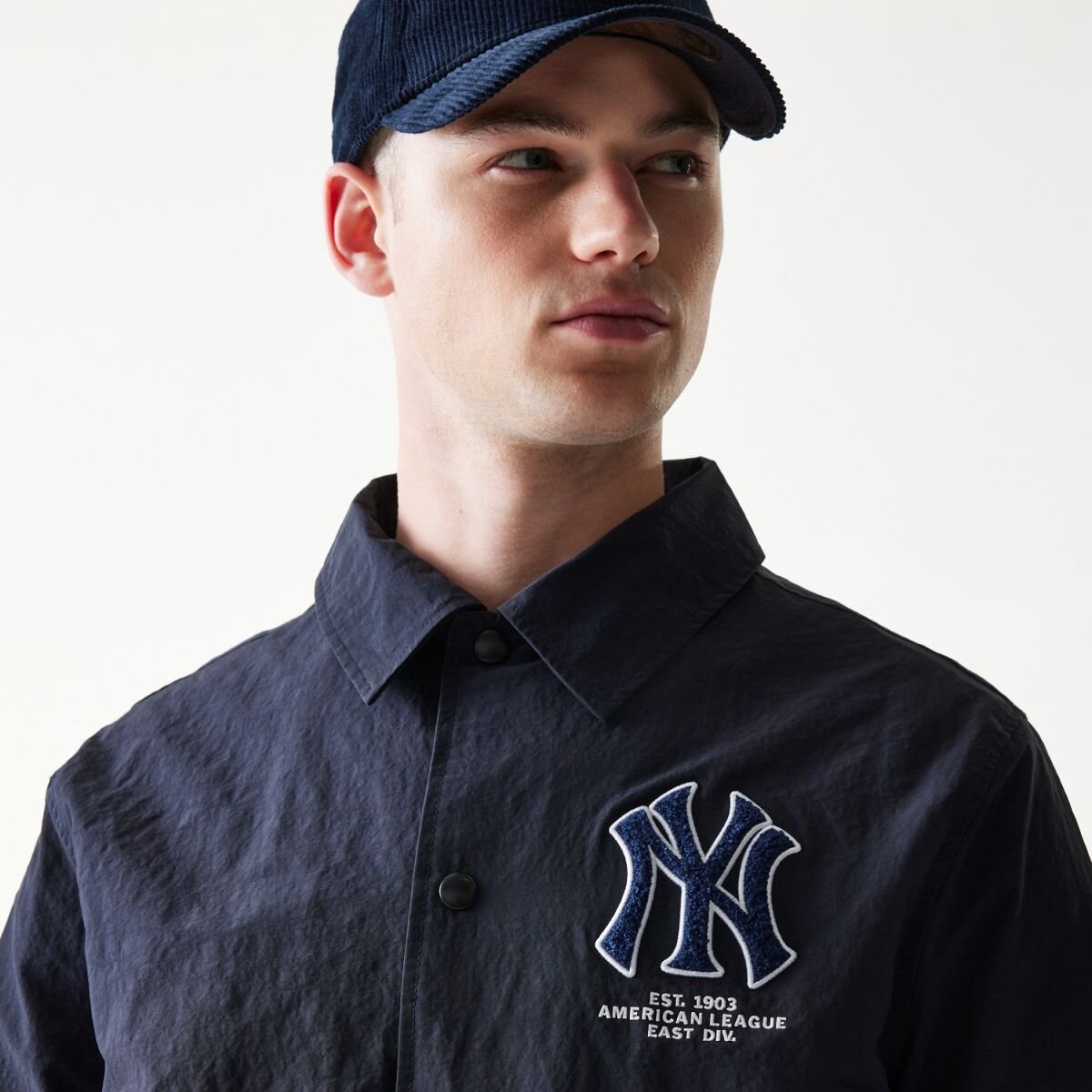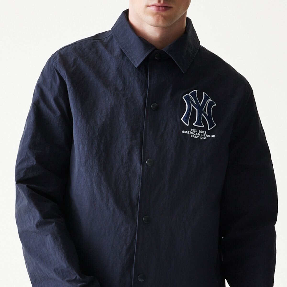 New Era dunkelblau Podzimní bunda für Männer mit dem Motiv des New York Yankees Baseballteams.