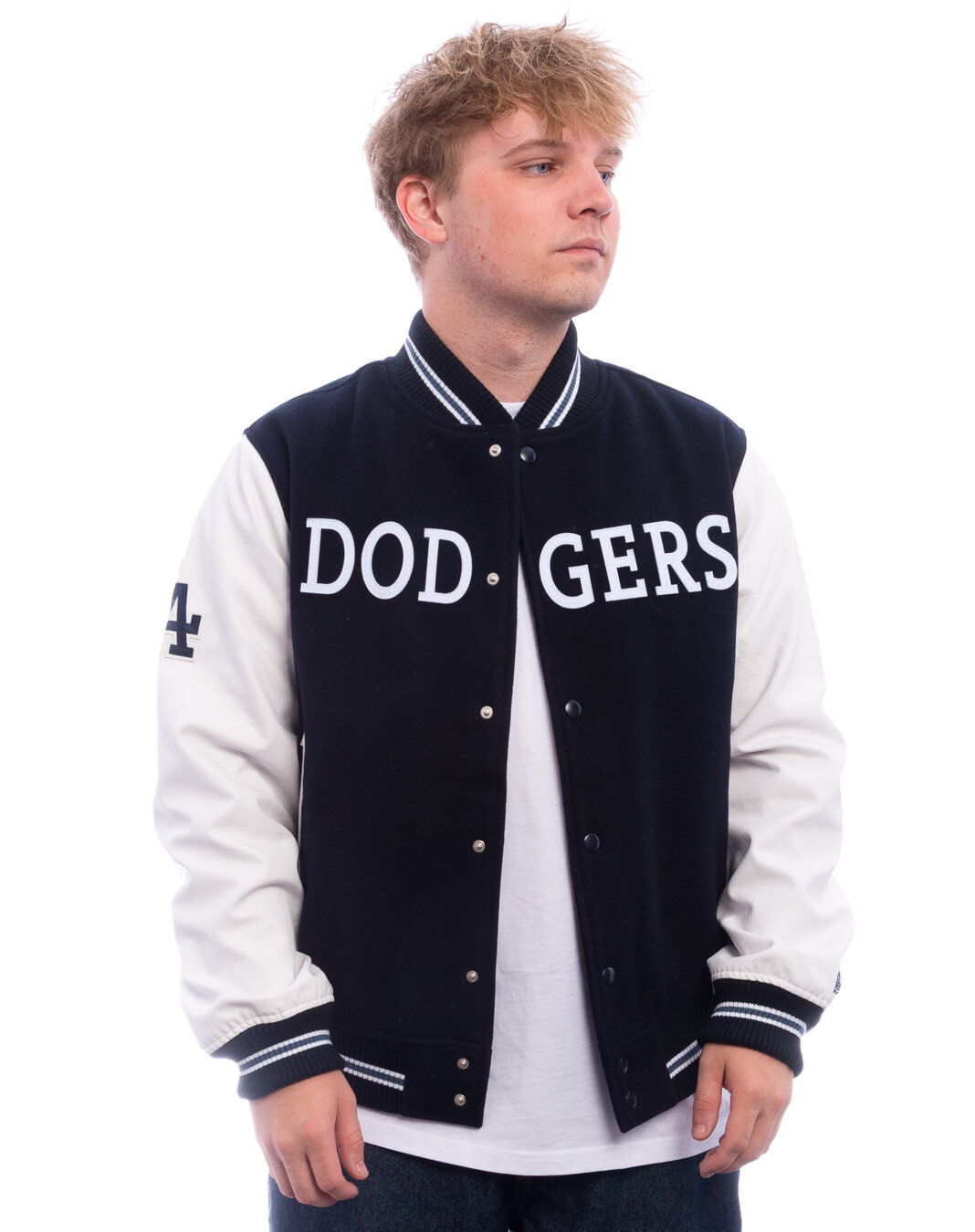New Era blau Podzimní bunda für Männer mit dem Motiv des Los Angeles Dodgers Baseballteams.