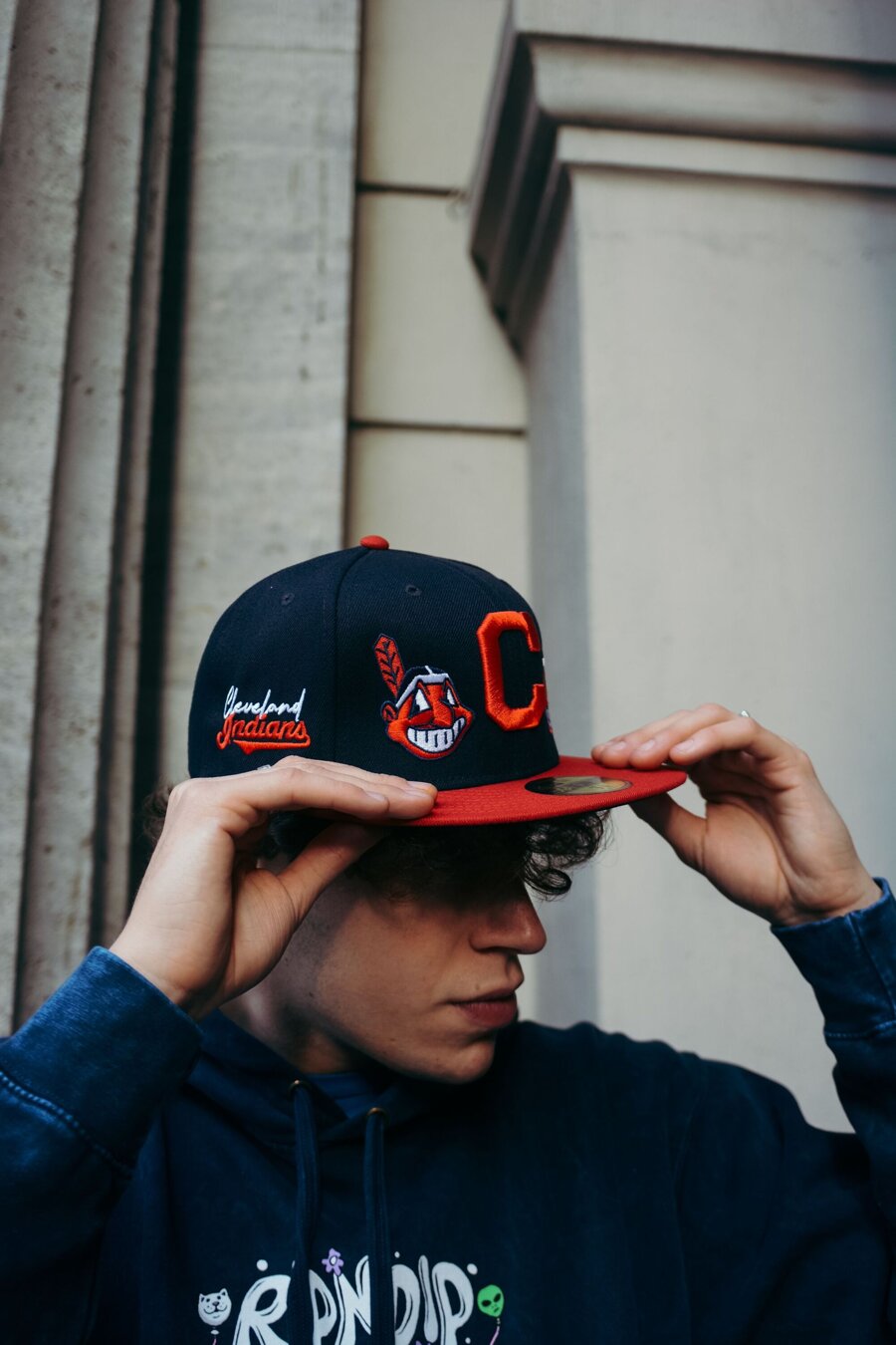 Adam Wave dunkelblau Basecap unisex mit dem Motiv des Cleveland Indians Baseballteams.