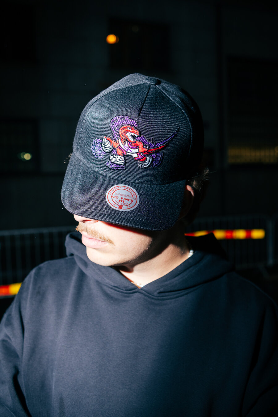 Mitchell & Ness schwarz Basecap für Männer mit dem Motiv des Toronto Raptors Basketballteams.