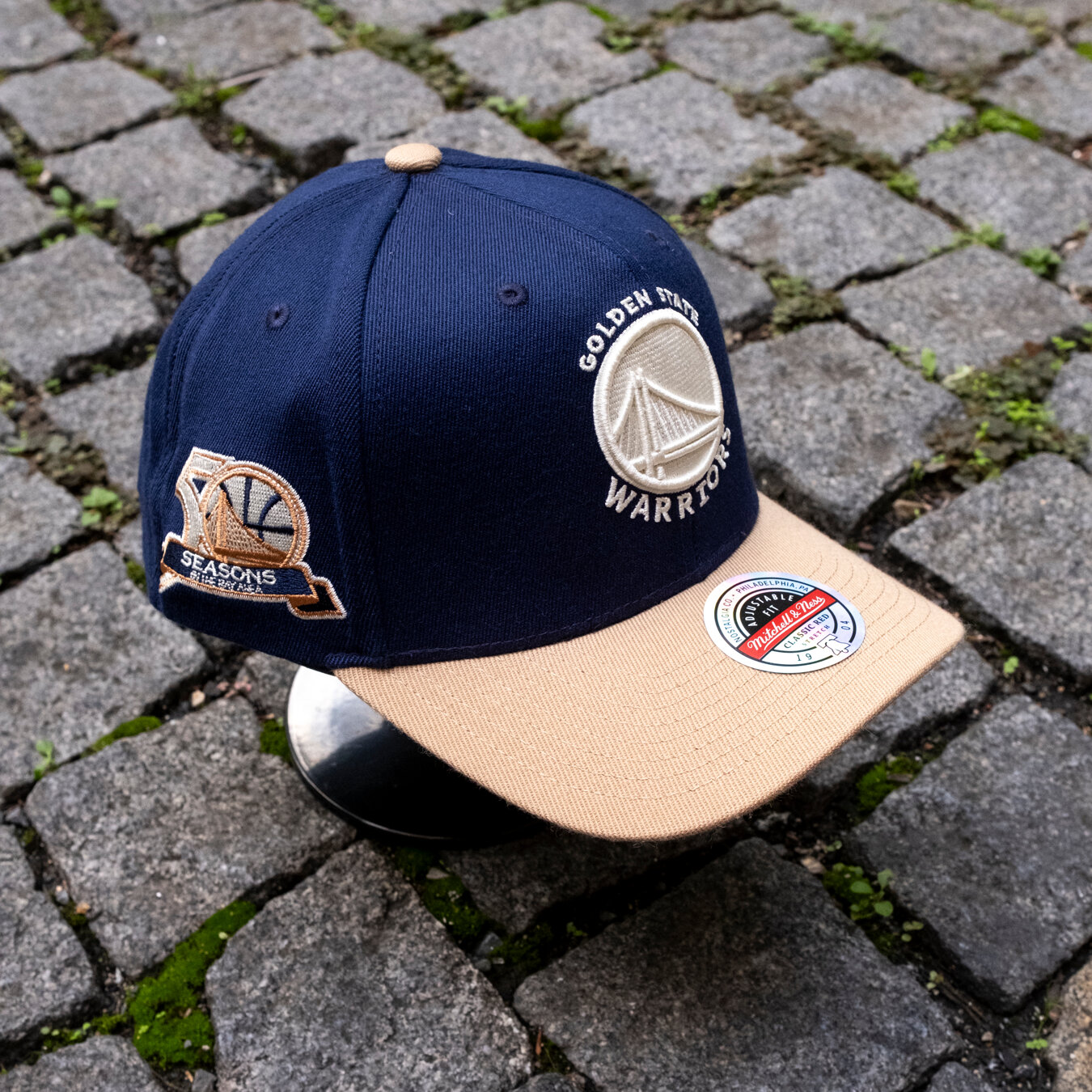 Mitchell & Ness blau Basecap für Männer mit dem Motiv des Golden State Warriors Basketballteams.