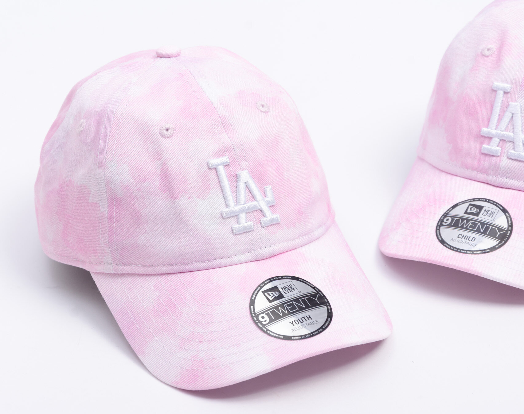 New Era rosa Basecap für Jungs mit dem Motiv des Los Angeles Dodgers Baseballteams.