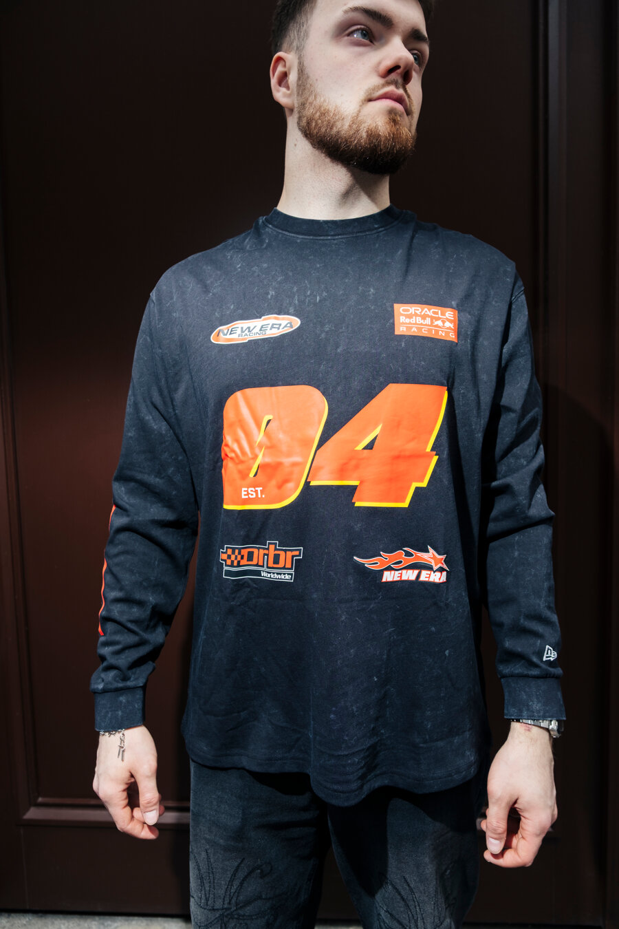 New Era schwarz triko für Männer mit dem Motiv des RED BULL F1 Motorsportteams.
