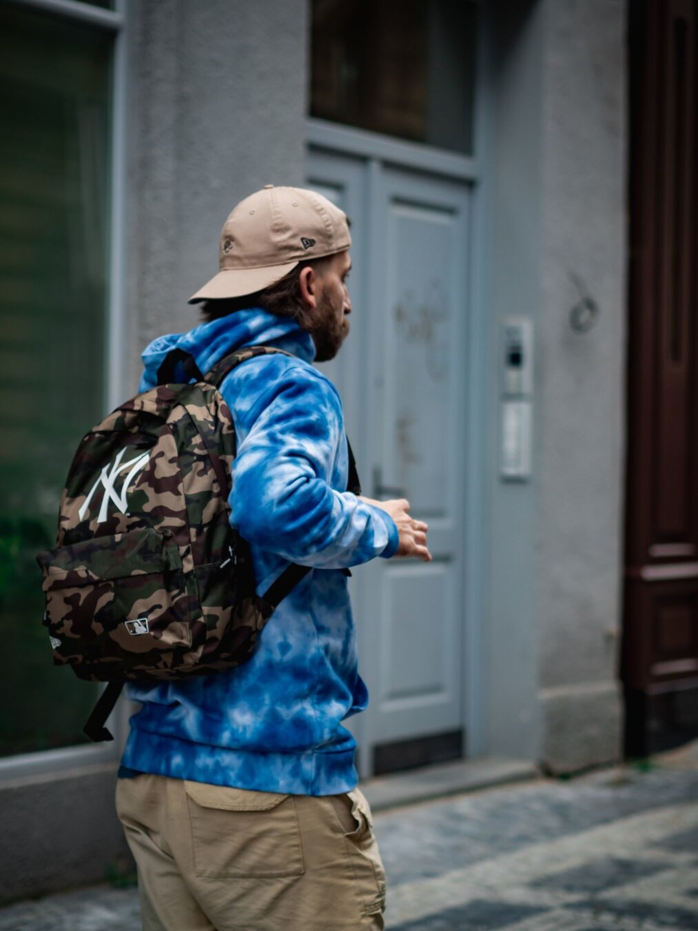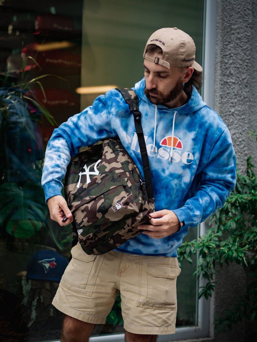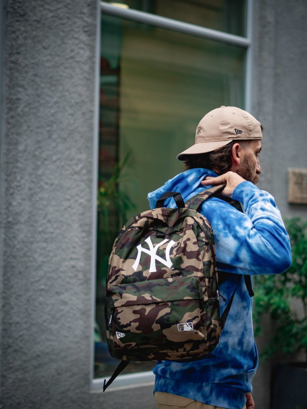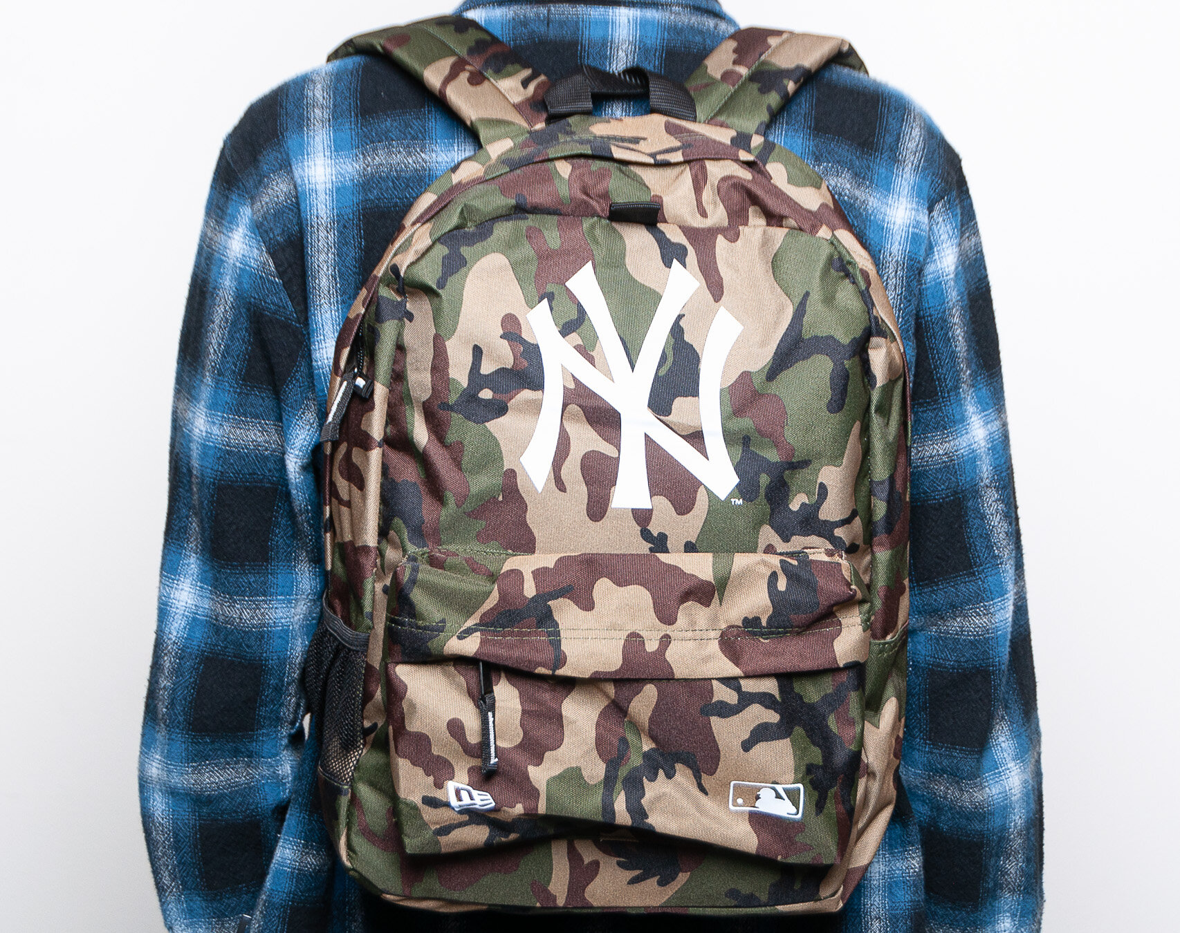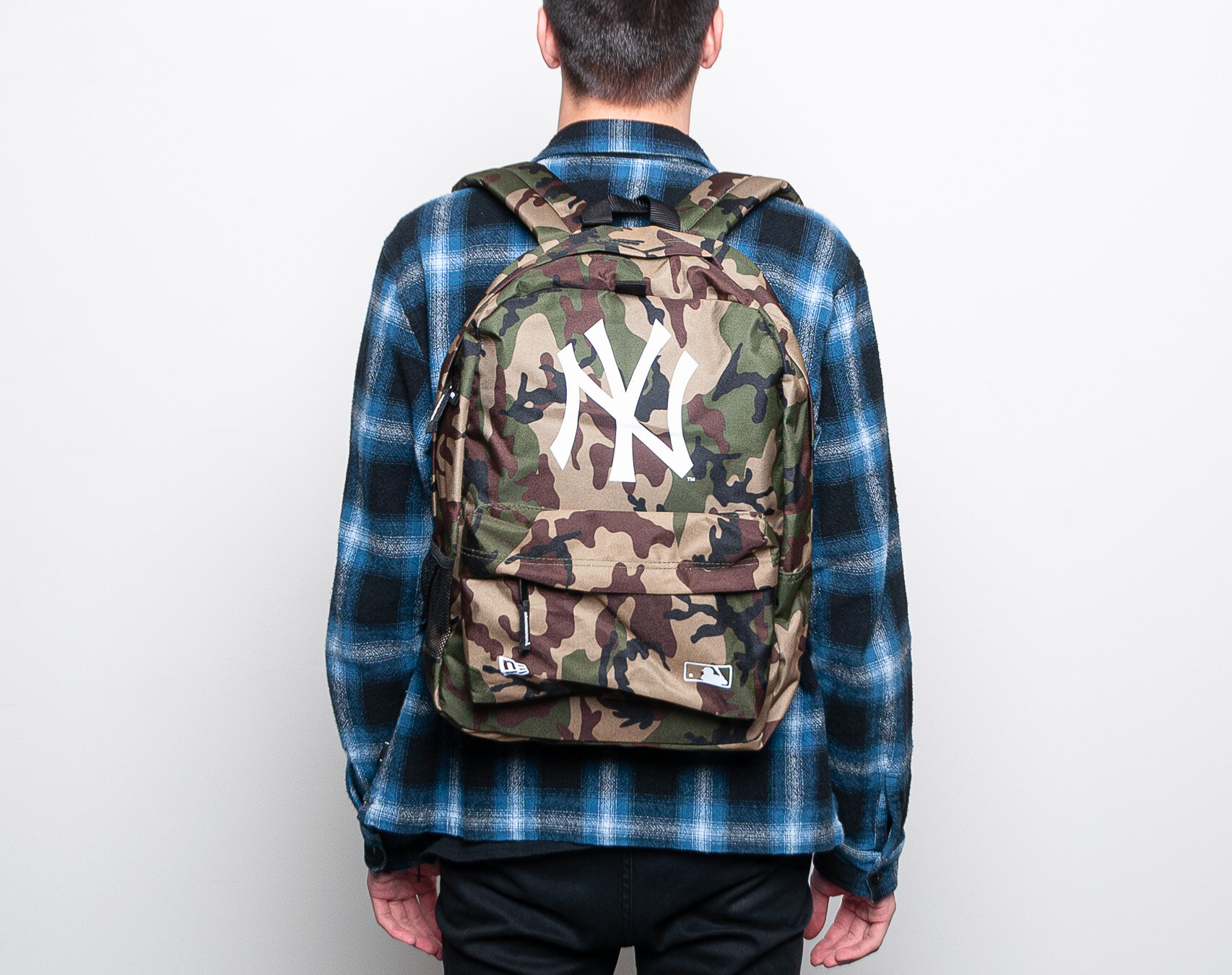 New Era tarnmuster batoh unisex mit dem Motiv des New York Yankees Baseballteams.