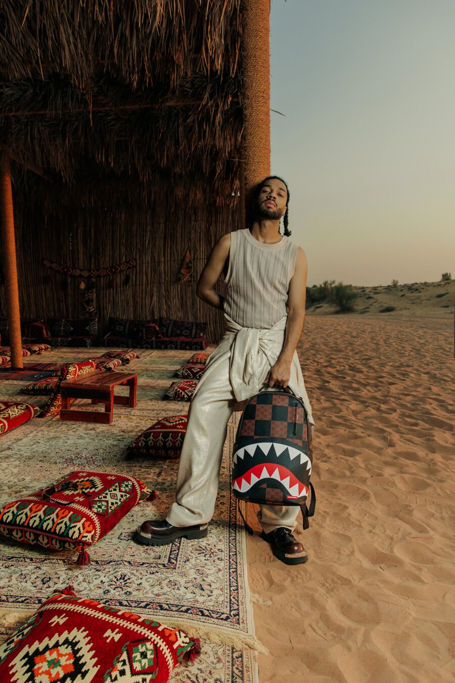 Im Zweiten Weltkrieg flogen Japaner und Amerikaner in denselben Kampfflugzeugen. Das konnte natürlich beim Feindbeschuss ziemlich verwirrend sein. Dann kam einer der Piloten der US-Armee, der gerne zeichnete, auf die Idee, die Flugzeuge mit wuchtigen Zähnen zu verzieren. Das gleiche Prinzip hat zu Beginn auch die Marke Sprayground im Rucksack- und Accessoire-Markt angewendet, die in Zeiten der Langeweile und Beliebigkeit genau dieses Symbol für ihre Designs auswählte, um leicht einprägsam zu sein.