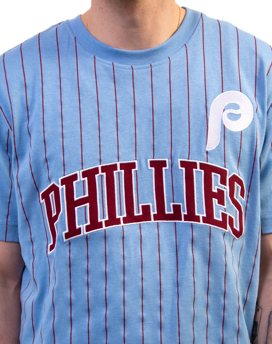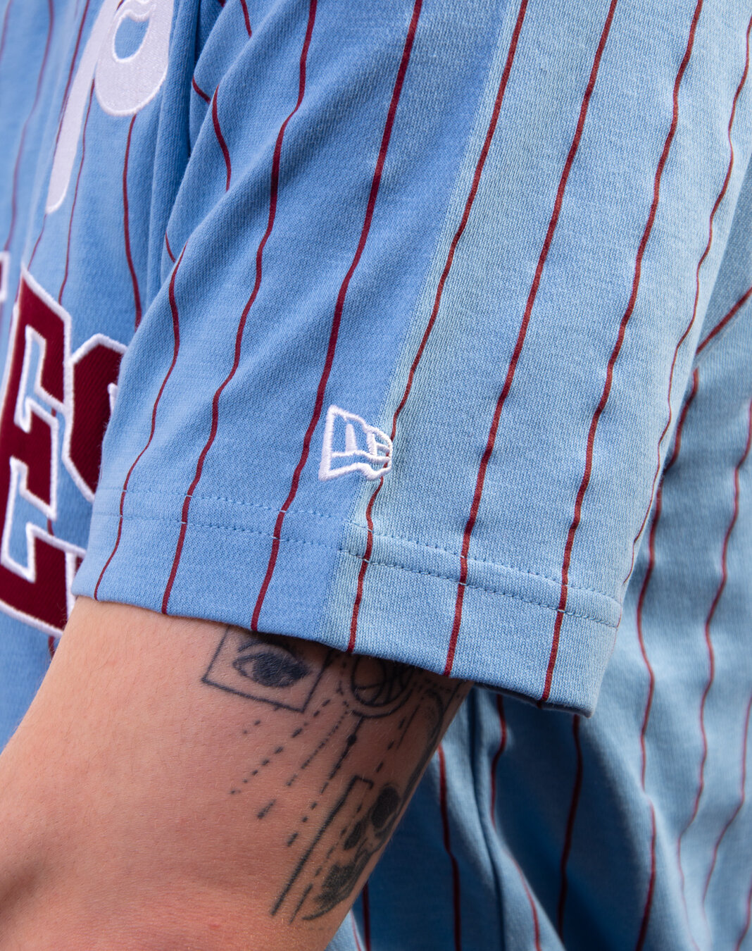 New Era hellblau triko für Männer mit dem Motiv des Philadelphia Phillies Baseballteams.